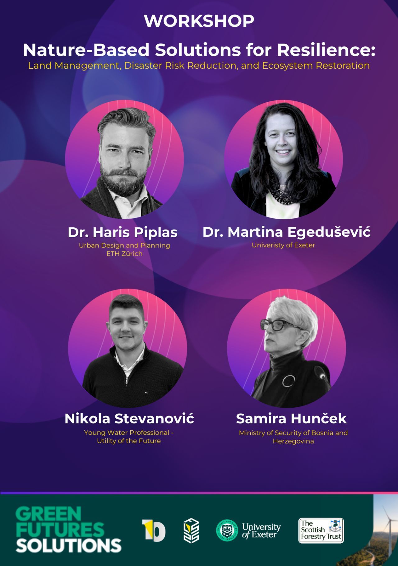The workshop featured contributors from the University of Exeter, ETH Zürich, Utility of the Future and the Ministry of Security of Bosnia and Herzegovina. Speakers offered perspectives spanning academic research, policy implementation, and applied practice with a strong focus on empowering future leaders to engage with climate adaptation and disaster risk reduction.
