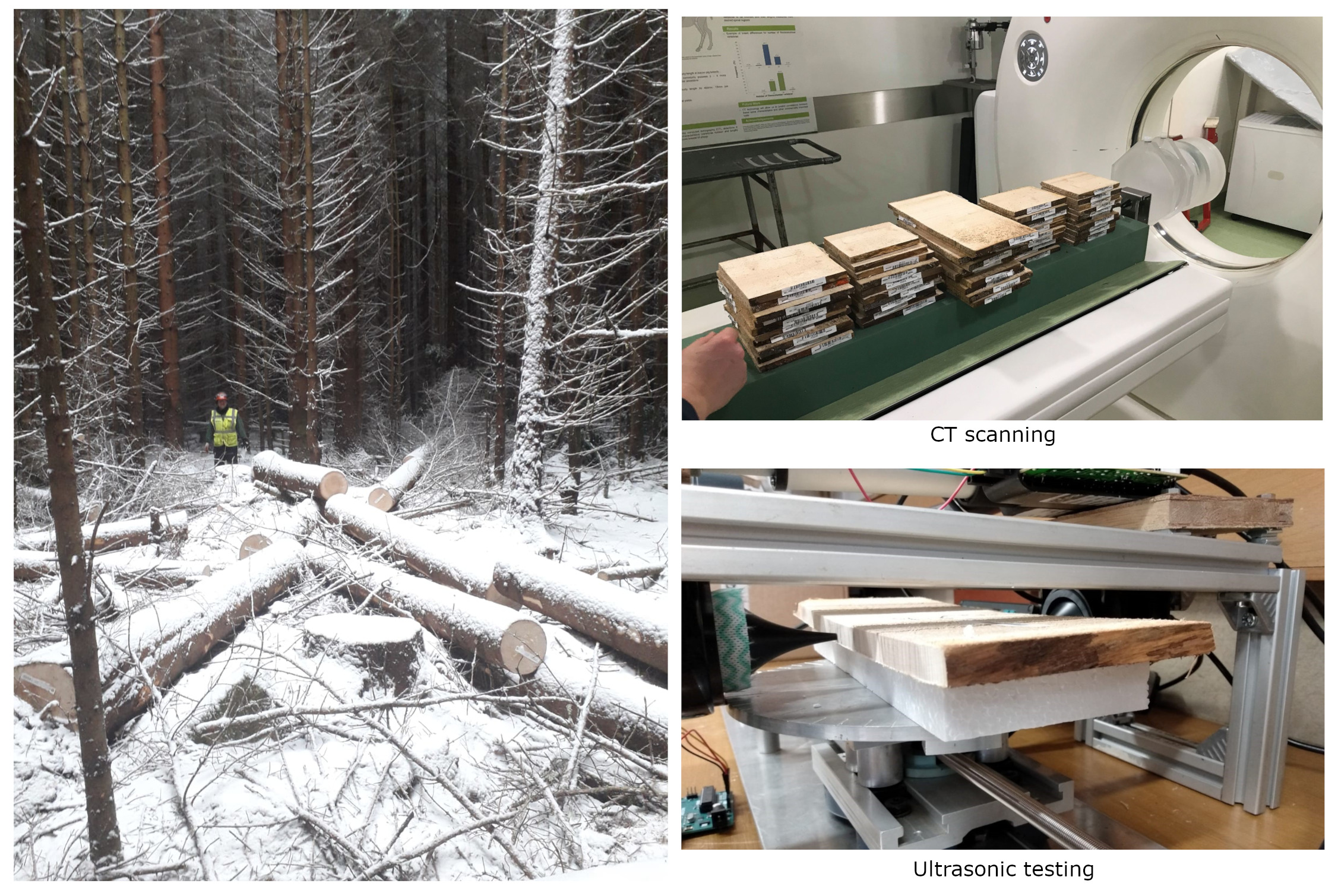 Following an assessment of diameter at breast height (DBH), selected sample trees were felled in a provenance trial planted in 1974 at Farigaig near Foyers, south-west of Inverness. The trial was comprised of 25 origins of Sitka spruce, spanning most of the native range from Oregon to Alaska. Acoustic velocity measurements made on three logs cut from each of the felled trees were used to estimate wood stiffness at a log level. Crosssectional discs were removed from each log in one replicate and processed to produce samples for x-ray CT scanning to assess wood density at a growth ring level. These samples were then further processed in preparation for ultrasonic scanning, which will shortly be completed to provide ring-level assessment of wood stiffness. Analysis of DBH data showed a trend of declining basal area with increasing latitude of seed origin (provenance), and a slightly stronger trend of increasing basal area with increasing mean annual temperature at the seed origin location. The best performing provenances for basal area came from the Haida Gwaii (QCI) and Washington zones. Variability in wood stiffness (estimated from log acoustic velocity) was mainly due to differences within and between trees, with less than 5% of the variation accounted for by differences among provenances. Wood stiffness did not appear to be affected by latitude of seed origin, although a possible marginal effect of mean annual temperature was observed. Variation in wood stiffness will be further examined when data from the ultrasonic scanning of discs are available. Significant differences in wood density among provenances were observed but there was no clear pattern relating wood density to seed origin latitude or climate. There was a trend of increasing wood density with increasing stand density (trees ha-1). Plans are in place to complete ultrasonic scanning of samples from the first replicate and to cut sample discs from the second replicate, which will also undergo x-ray CT and ultrasonic scanning (this work has been delayed due to COVID).